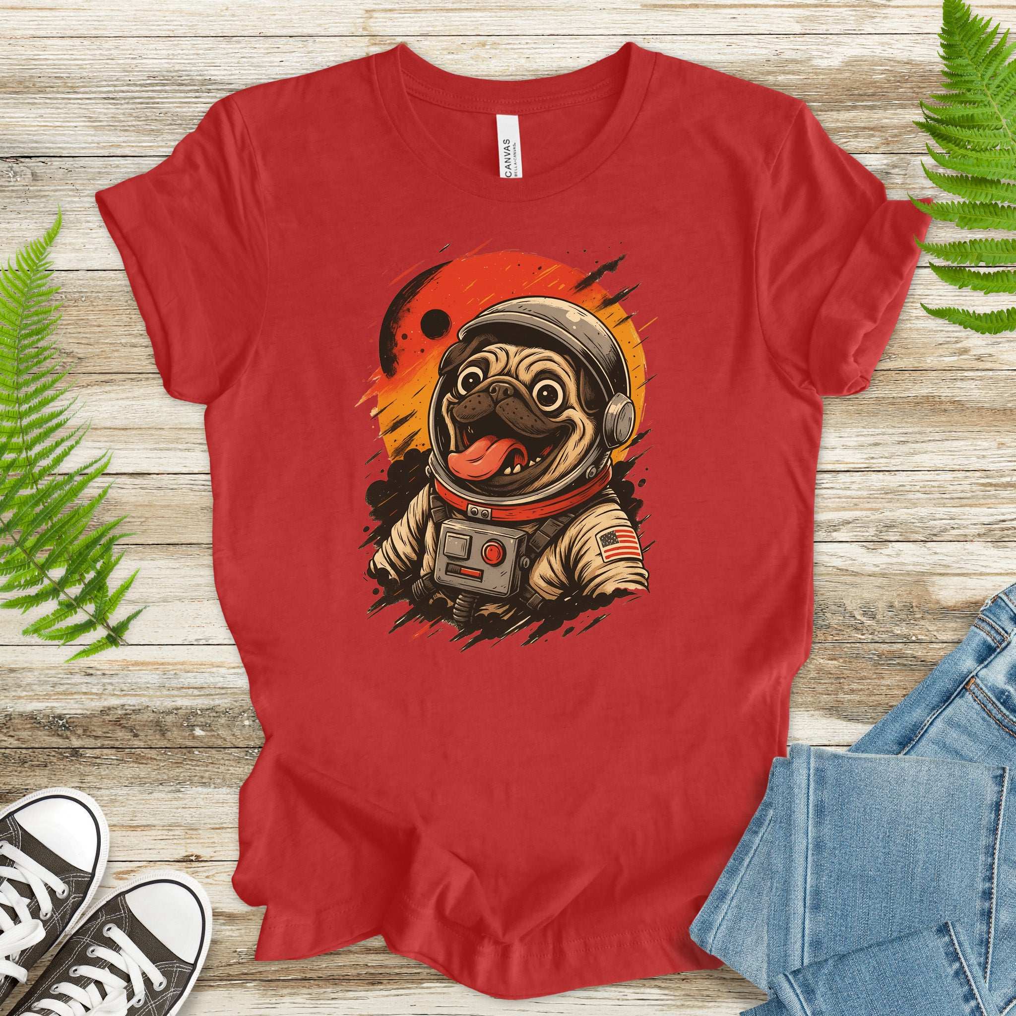 Pugstronaut Space T-Shirt – Funny Goofy Pug in Galaxy Suit Tee