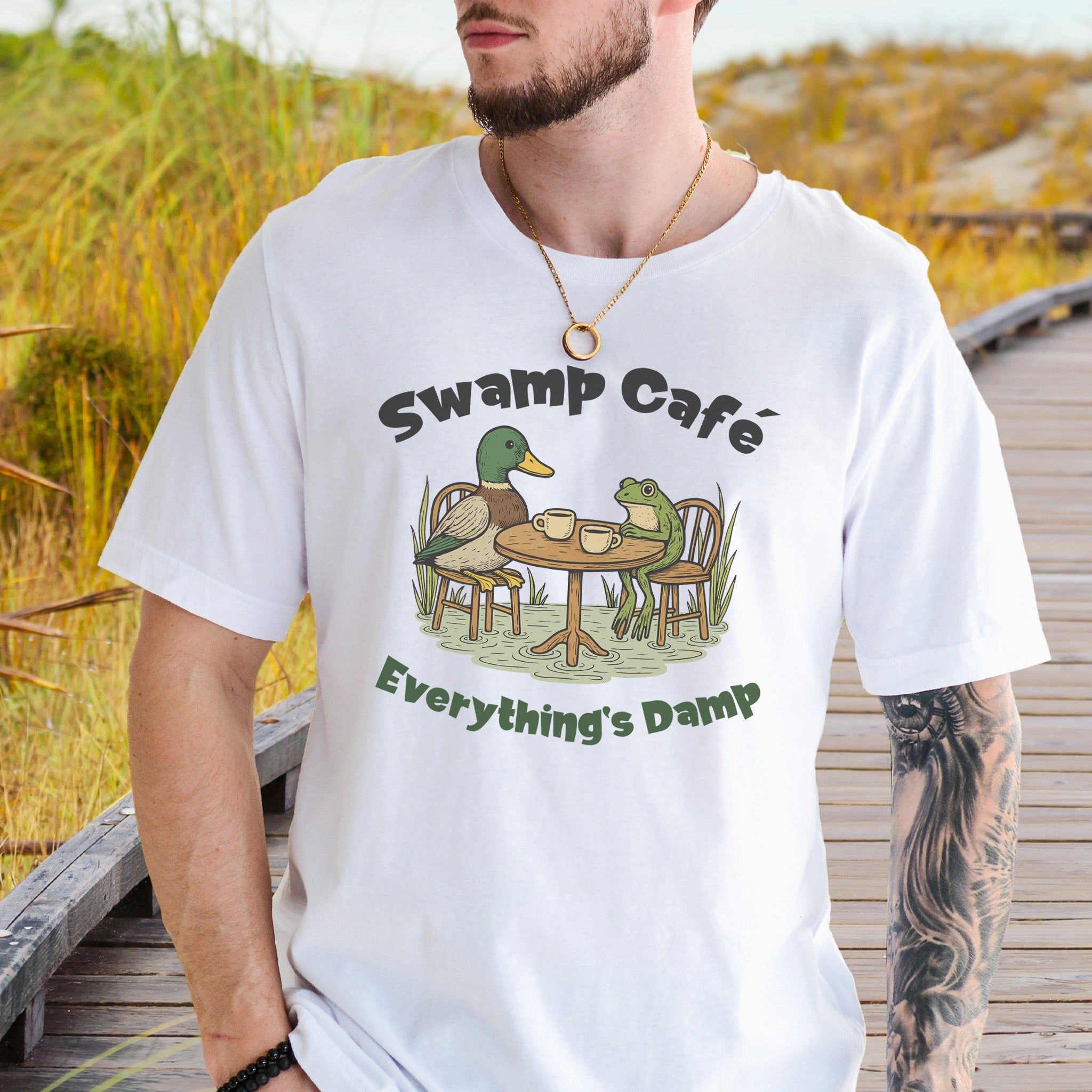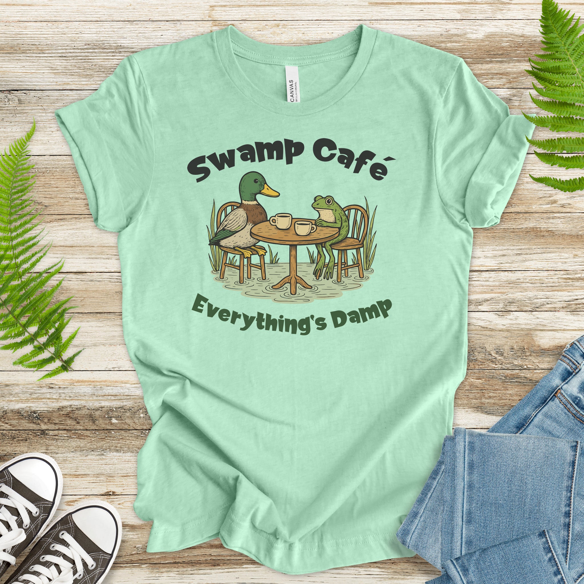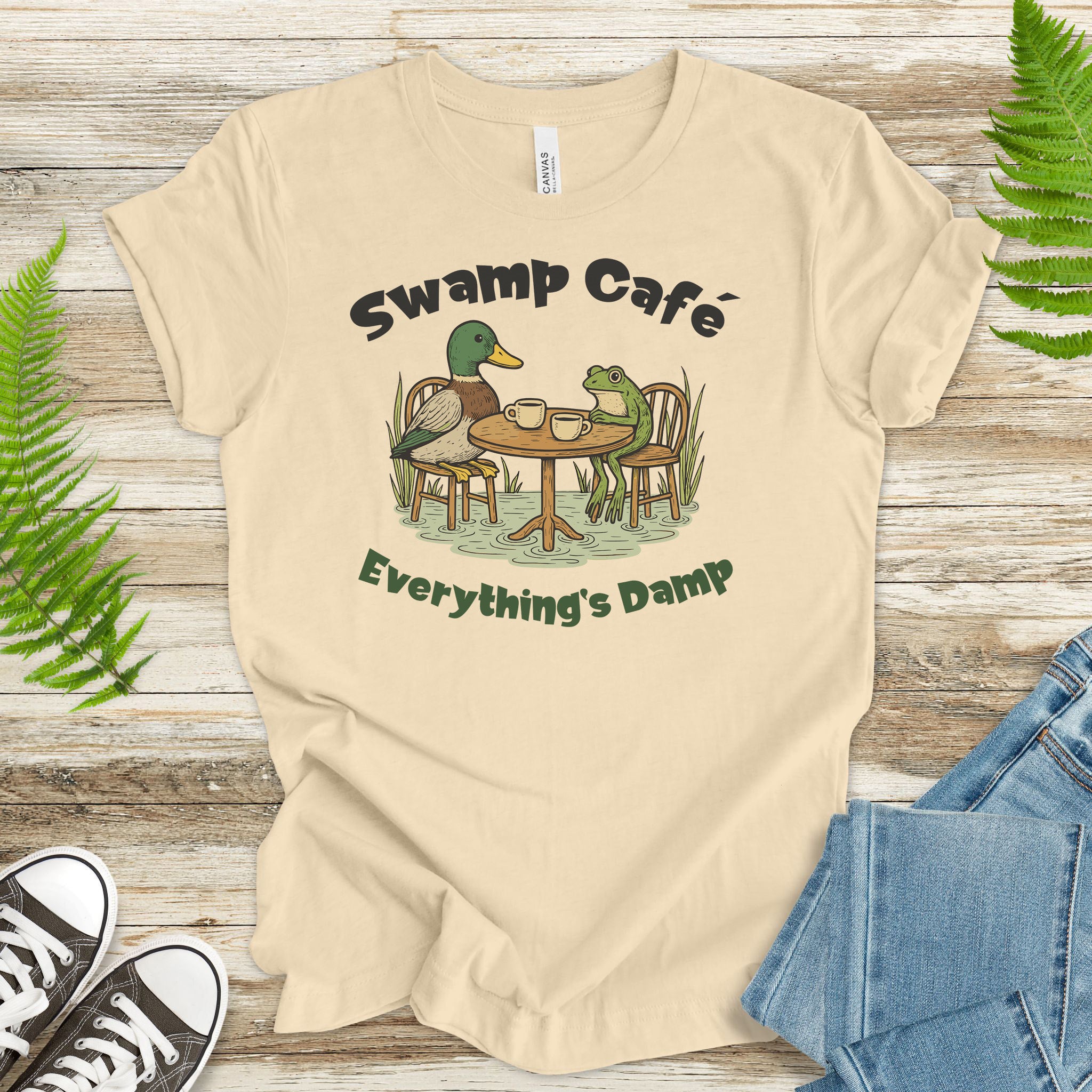 Swamp Café Funny Frog & Duck Coffee T-Shirt – Retro Nature Meme Gift