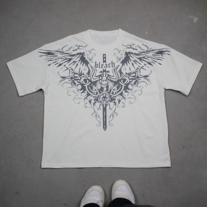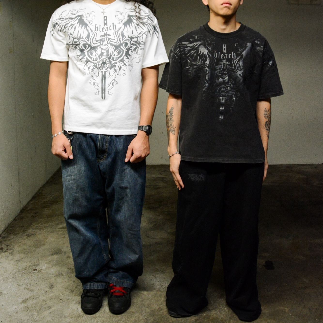 • 240GSM | 100% COTTON• Large winged cross print with BLEACH-inspired gothic elements• Features skull, clock, blade, and stylized “BLEACH” type across the chest