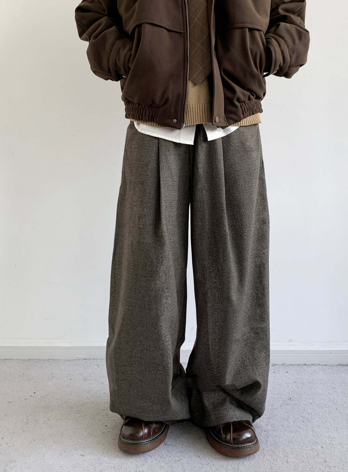 The Denver Casual Pants bring a clean casual look with a subtle houndstooth pattern and a relaxed overall-inspired fit. Designed with a classic zip placket and lightweight polyester fabric, they offer comfortable structure for everyday wear. The regular thickness makes them easy to style across seasons, while the loose silhouette keeps movement natural. Built for leisure settings, these pants balance modern detail with effortless versatility.