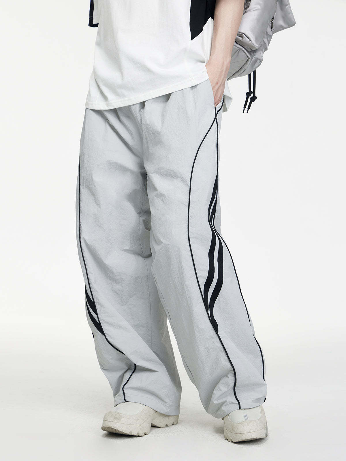 The Elite Weave Sports Pants combine a streamlined athletic look with everyday comfort. Crafted from lightweight polyester, they offer a smooth feel and flexible movement for active or casual wear. The gray-black design keeps the style minimal and modern, while the relaxed structure makes them easy to pair with any outfit. Built for men who want clean performance style without sacrificing comfort.