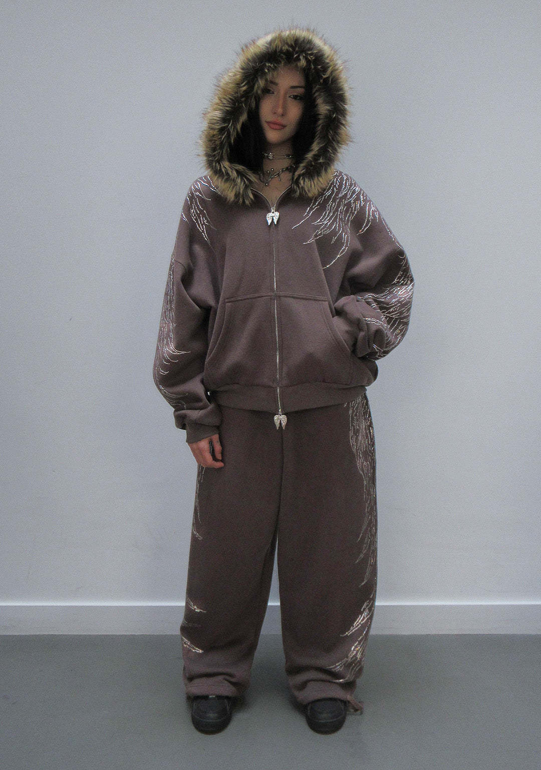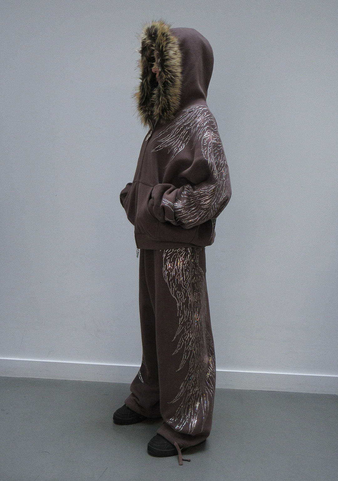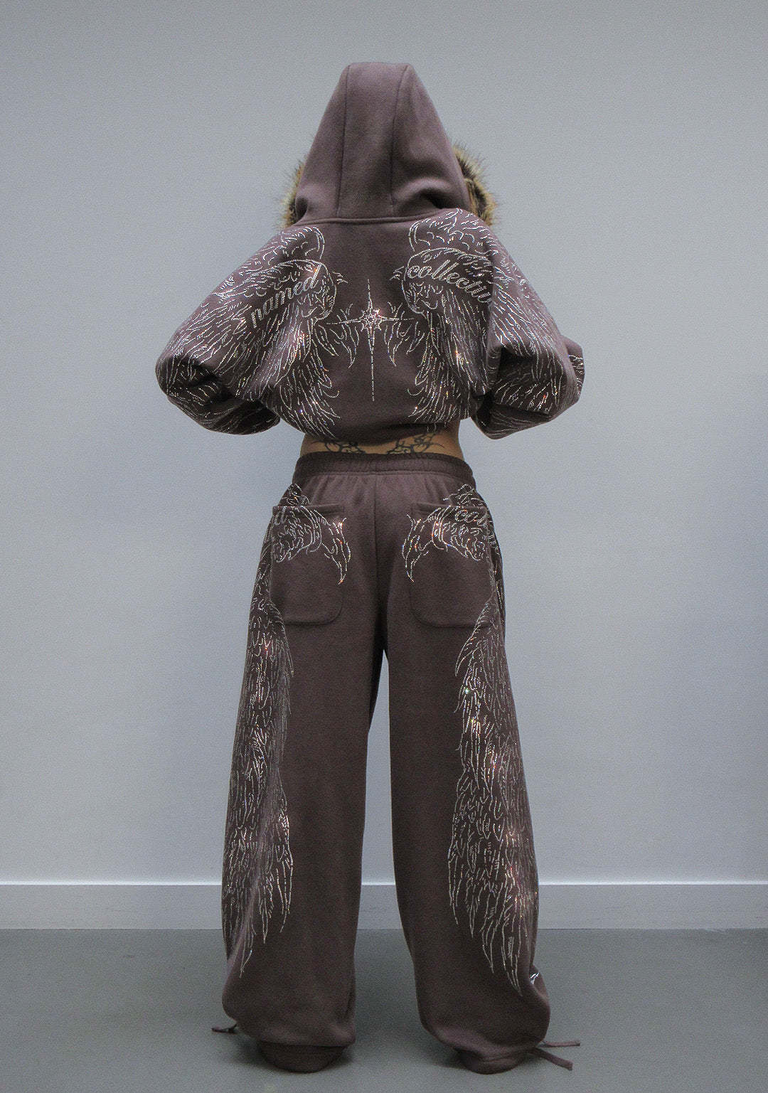 ★ Embellished with all-over, large scale rhinestone wing design