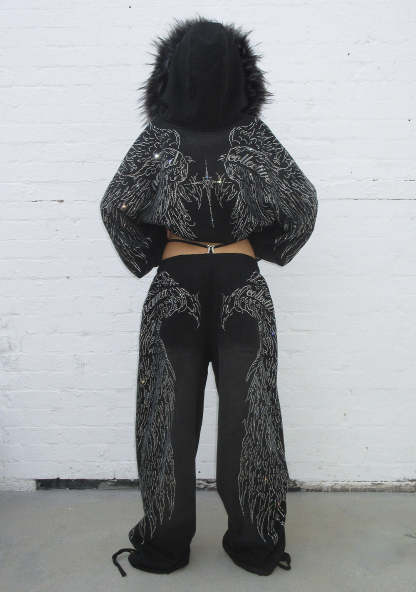 Orrienly™ RHINESTONE OVERSIZED SWEATPANTS WASHED BLACK