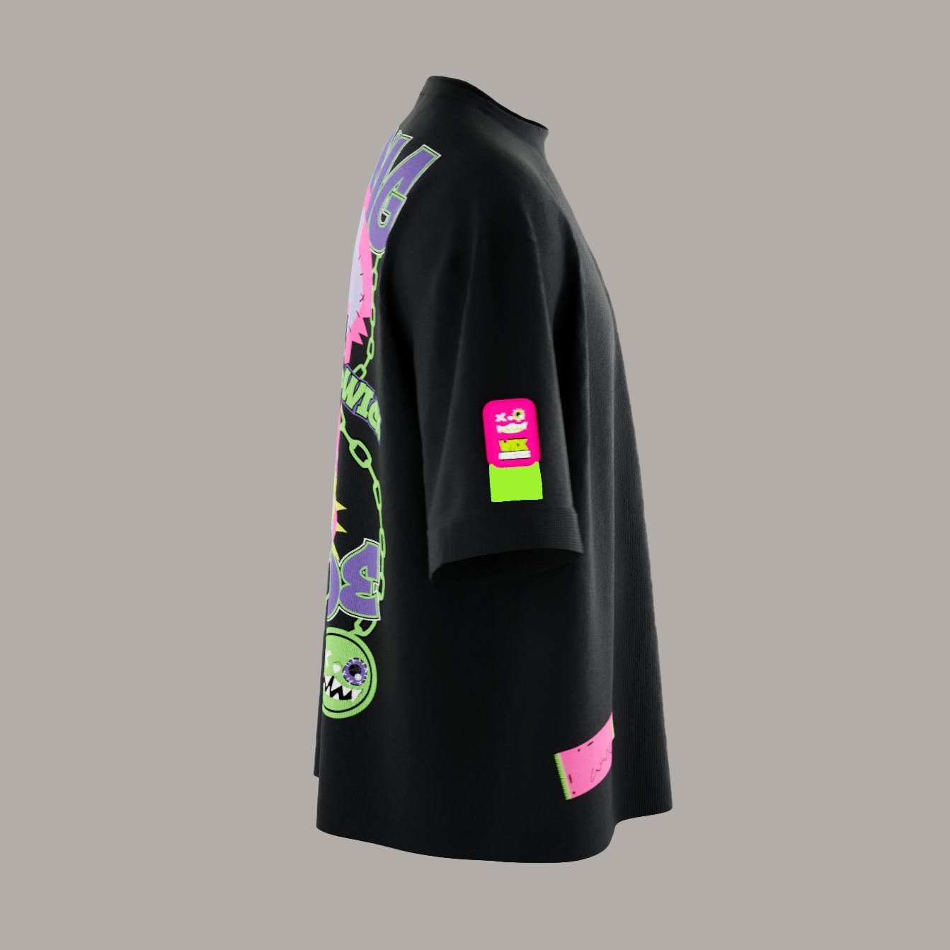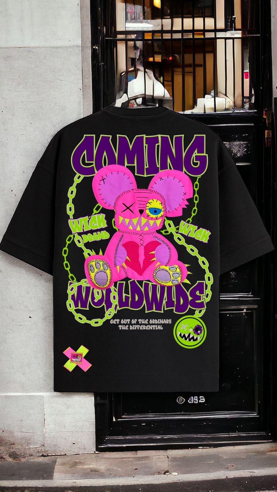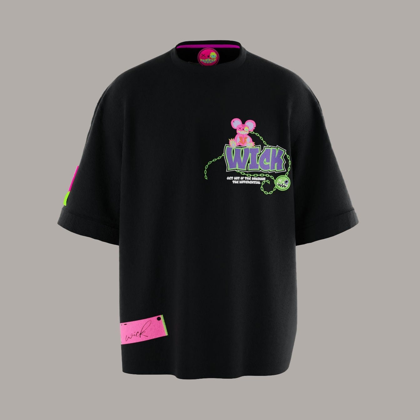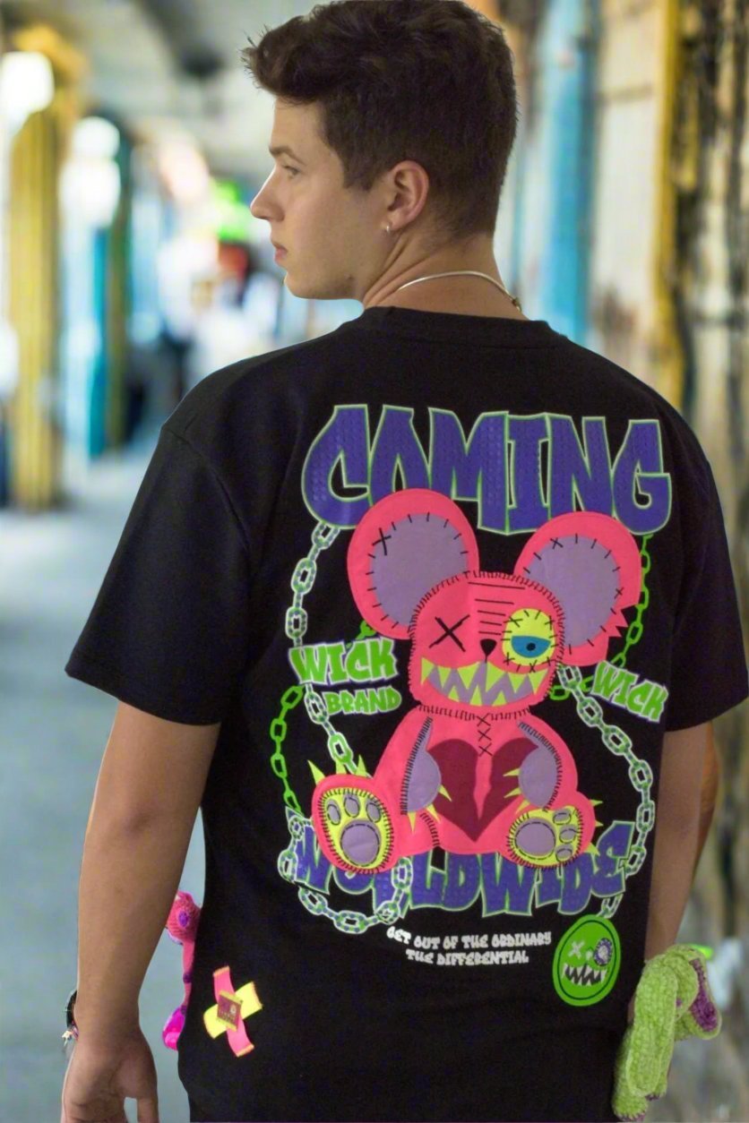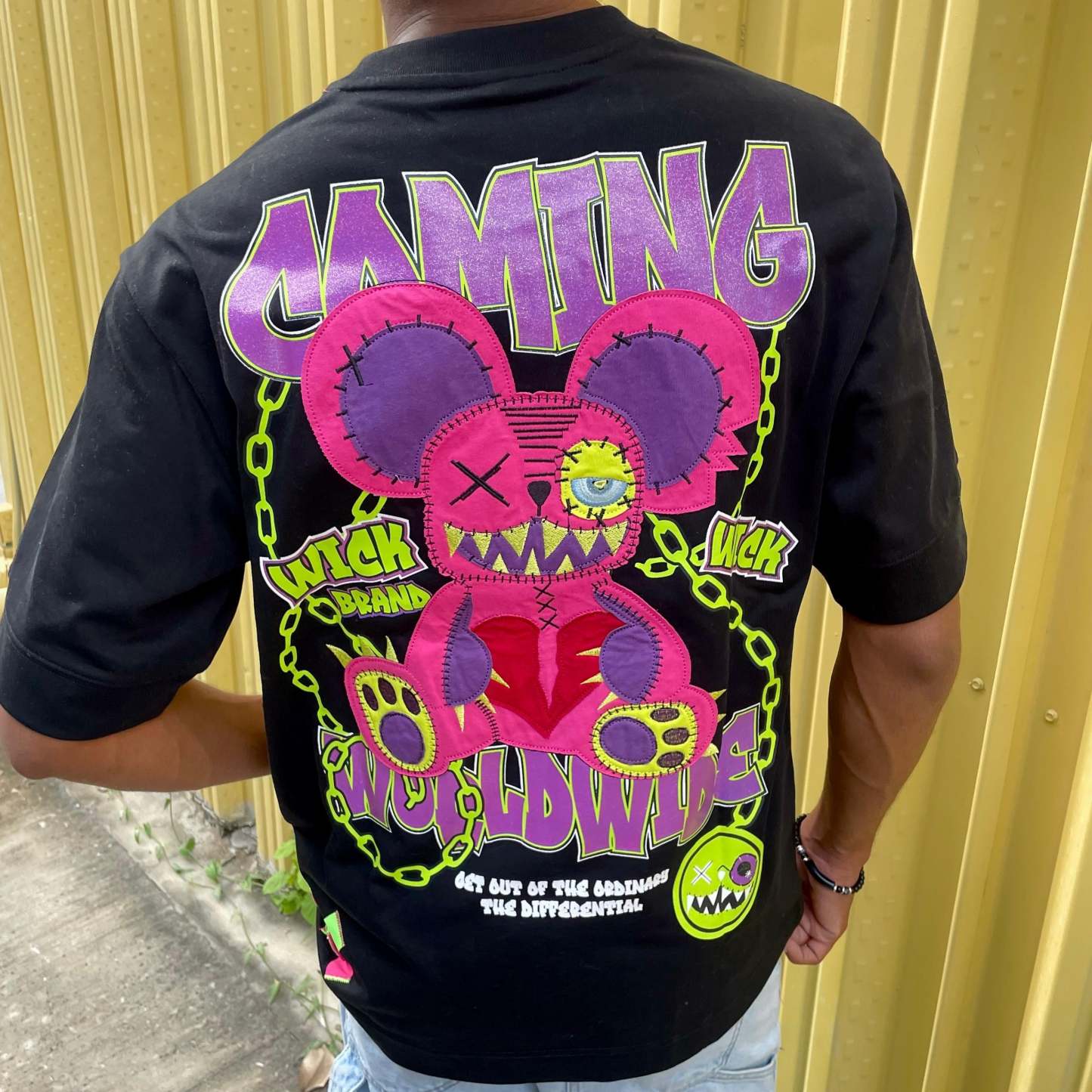 Level up your style with the Oversized Black Chain T-Shirt—bold chains, sleek black, and pure Wick Monsters energy.