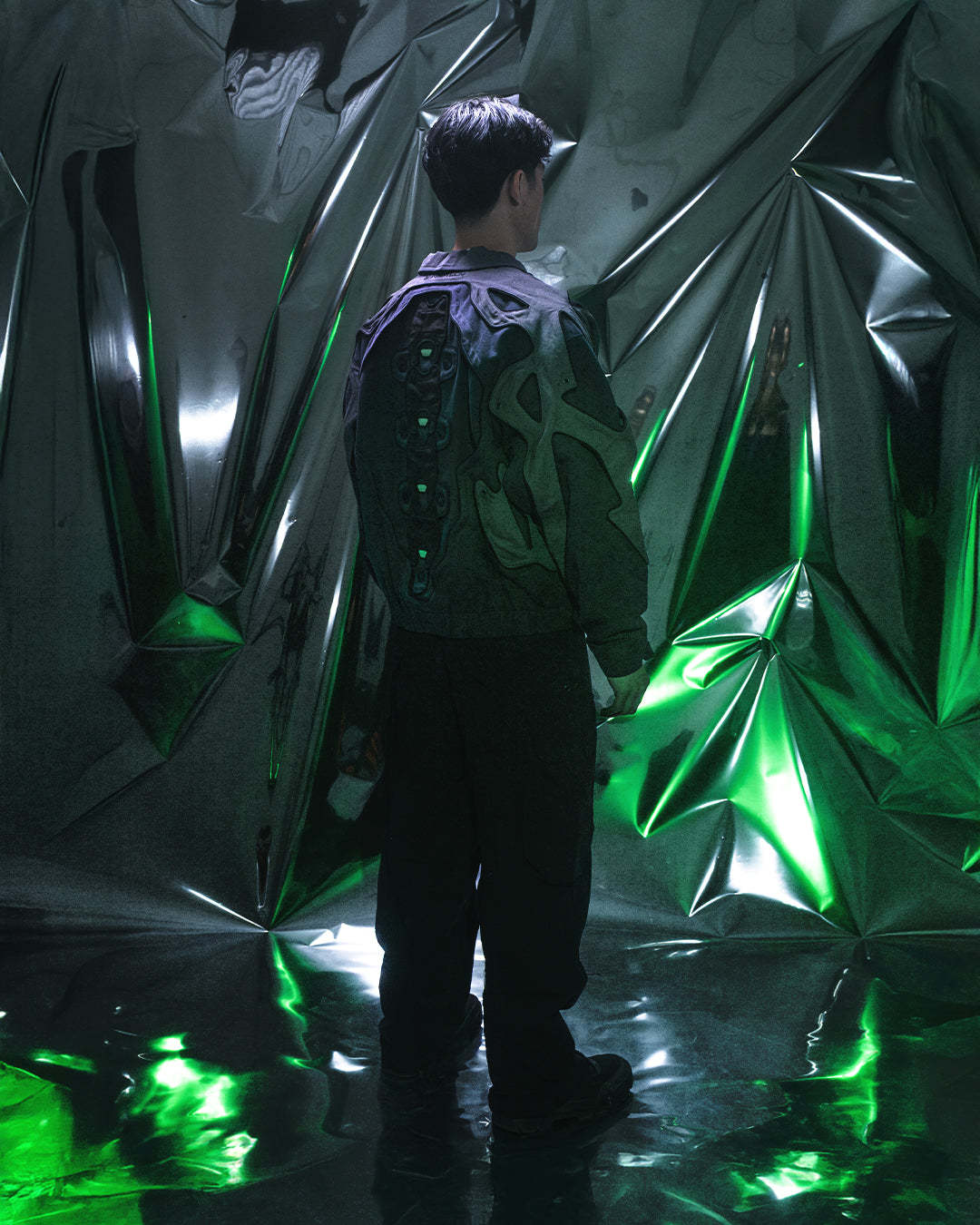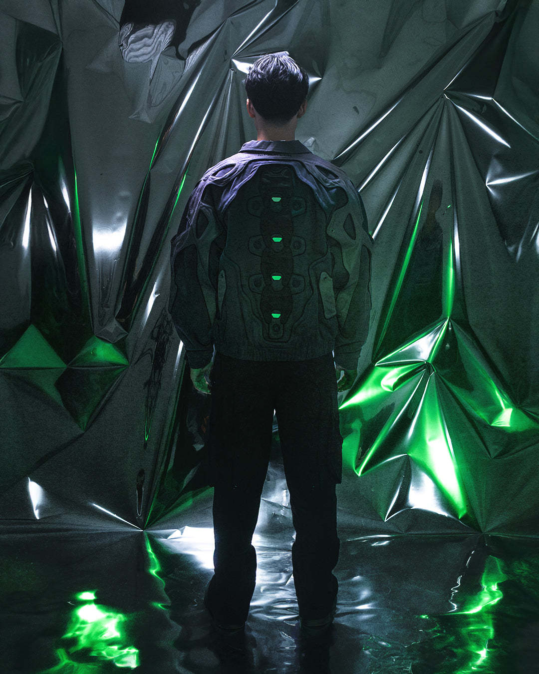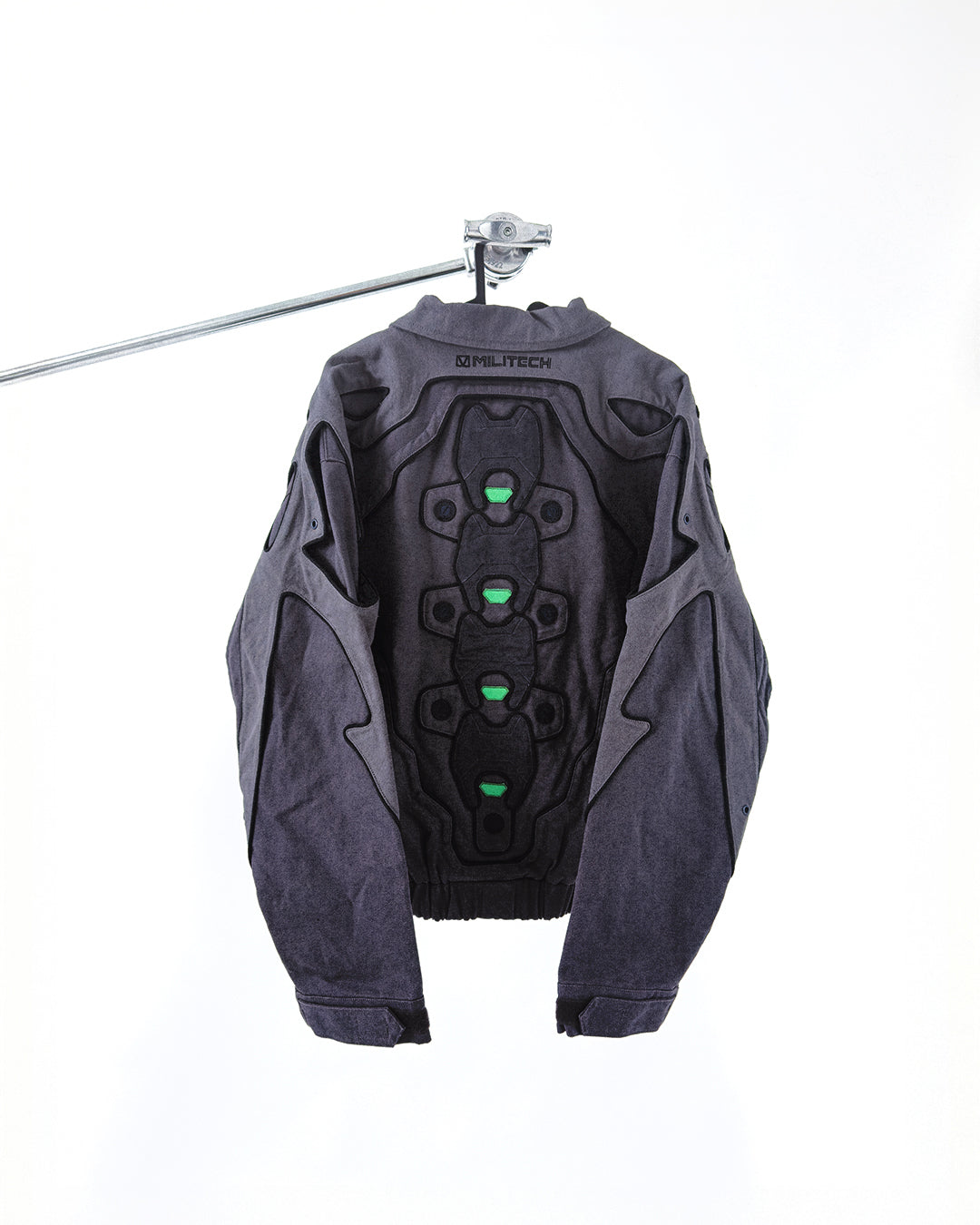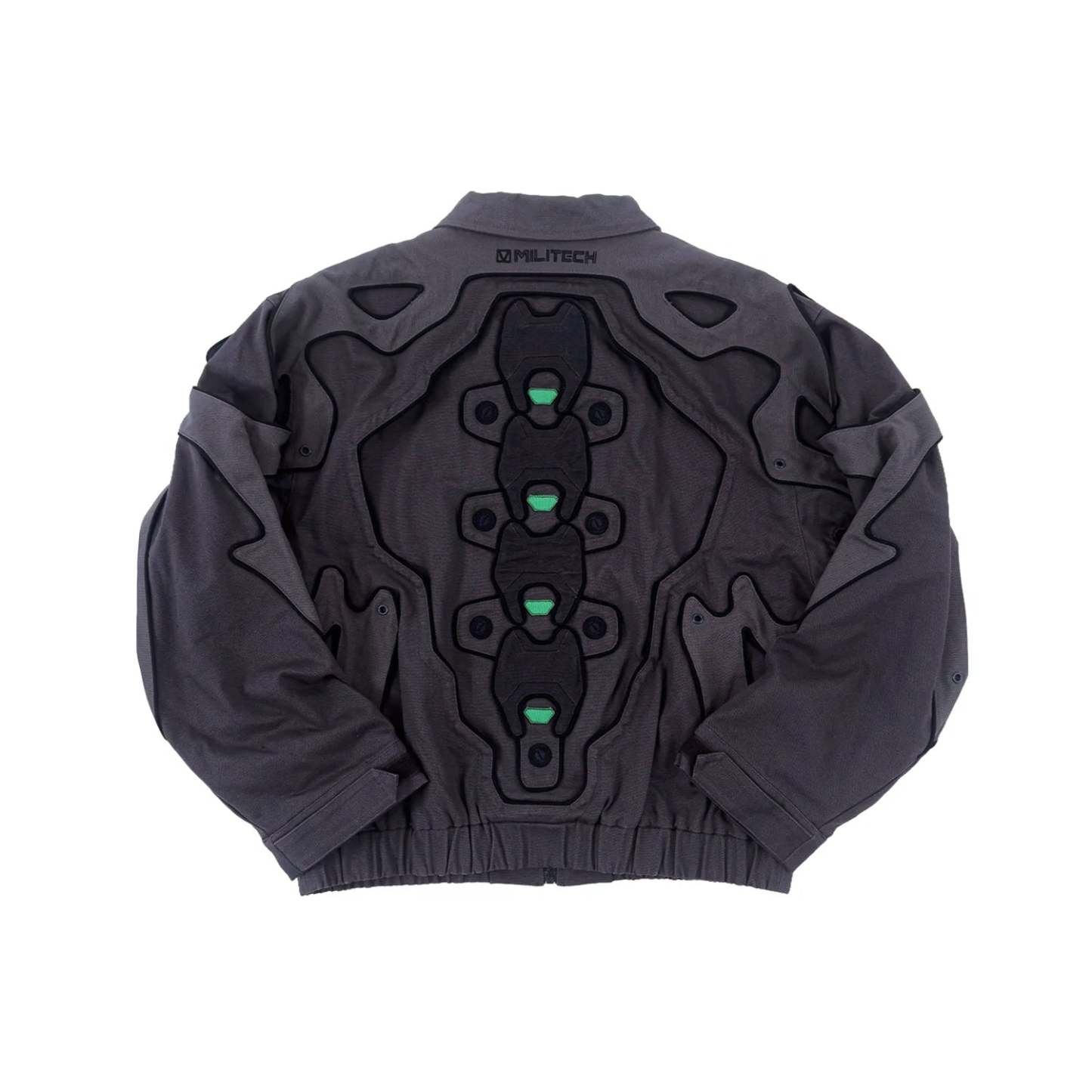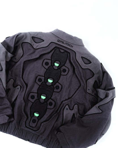 - Intricate Sandevistan Spine on the back consisting of multiple fabric layers and embroidered patches