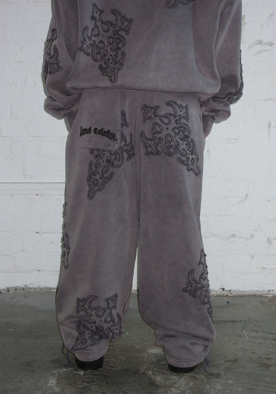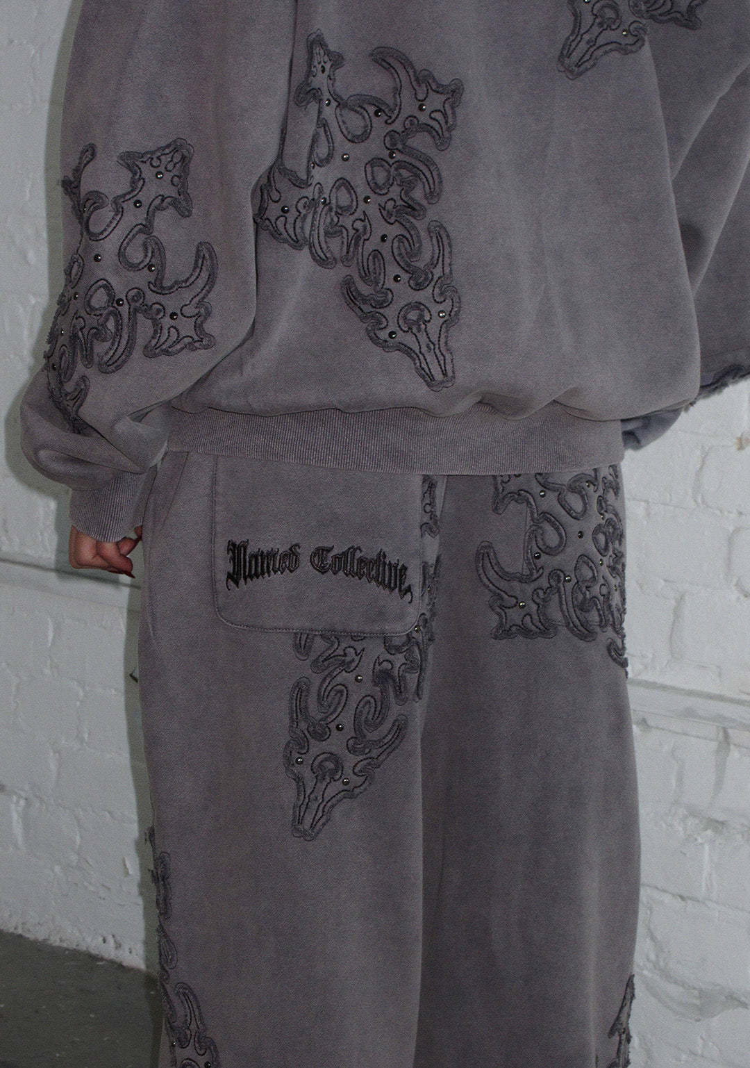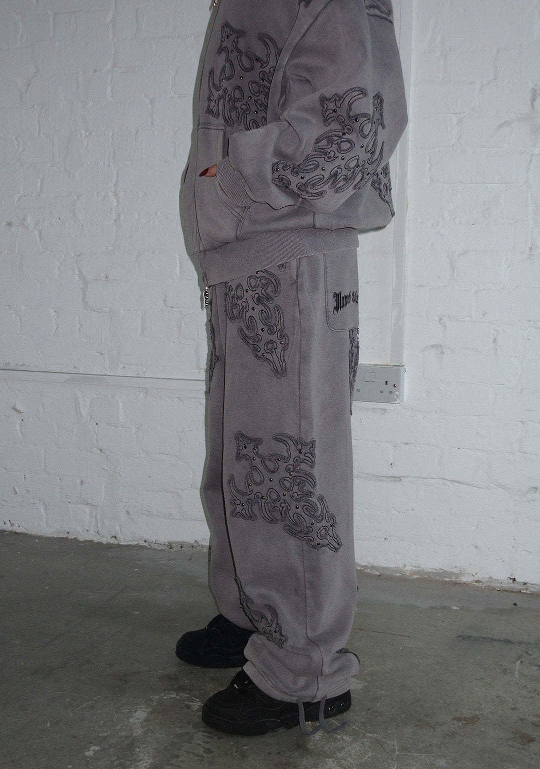 ★ All over custom distressed applique embellishments with studded detailing