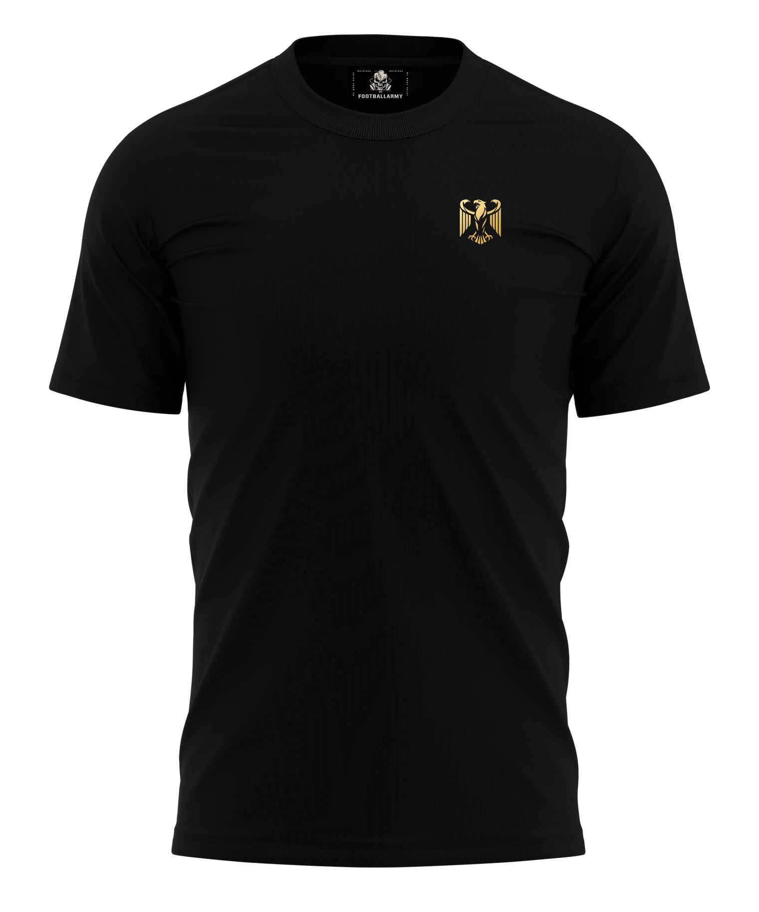 Nur ein präziser Gold-Adler auf der Brust – minimal, hochwertig, selbstbewusst.