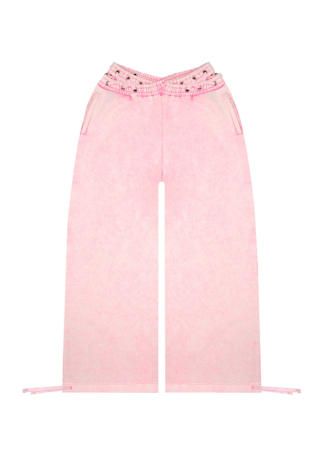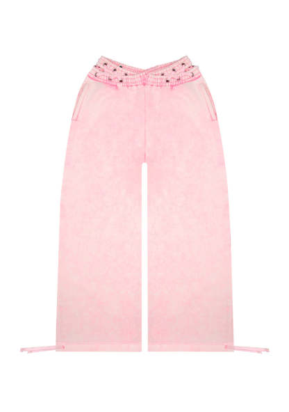 ★ Featuring two back pockets, cross-over waistband detail and adjustable ties on ankles for styling preference