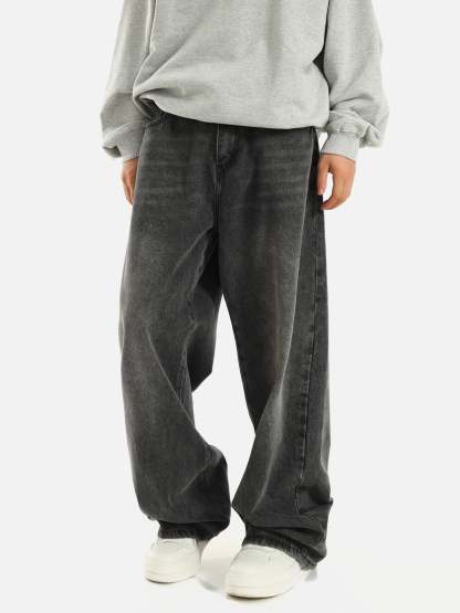 The Vintage Fade Wide Leg Jeans are built for effortless everyday wear, featuring a loose straight-leg fit with a soft faded gray tone. Designed with a medium-high waist and classic zipper closure, the structured denim fabric keeps its shape while allowing comfortable movement. The wide silhouette adds a relaxed vintage edge, making them easy to pair across street and casual styles. Durable construction and clean detailing make them reliable for daily rotation, available in youth-focused sizing.